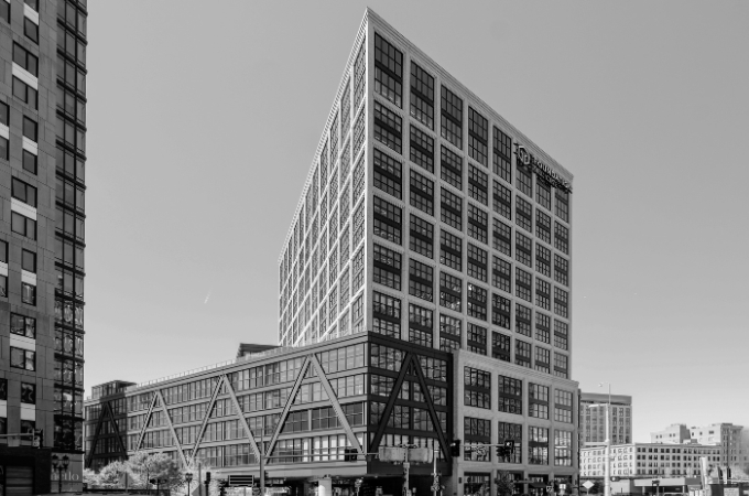 Designed by world-renowned Henning Larsen architects of Copenhagen, this 707,000 square feet, 17-story mixed-use building in Boston Seaport features 630,000 square feet of office space occupied by Amazon, new retail spaces, and a 700-seat performing arts center. One Boston Wharf Road is Boston’s largest net-zero carbon office building.